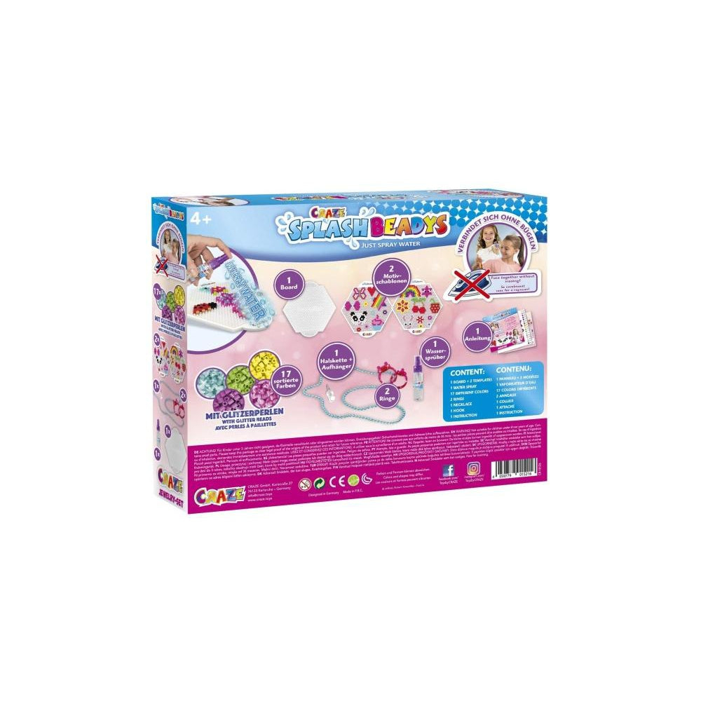 Modul de utilizare este simplu: margelele se aseaza pe sablon in modelul dorit, apoi se pulverizeaza apa, se lasa la uscat, iar modelul final se desprinde de pe placa. Pentru ca nu necesita caldura, Set Creatie Margele - Bijuterii este potrivit pentru activitati creative desfasurate intr-un mod mai confortabil si mai usor de gestionat. Produsul este recomandat pentru copii de la 4 ani in sus.