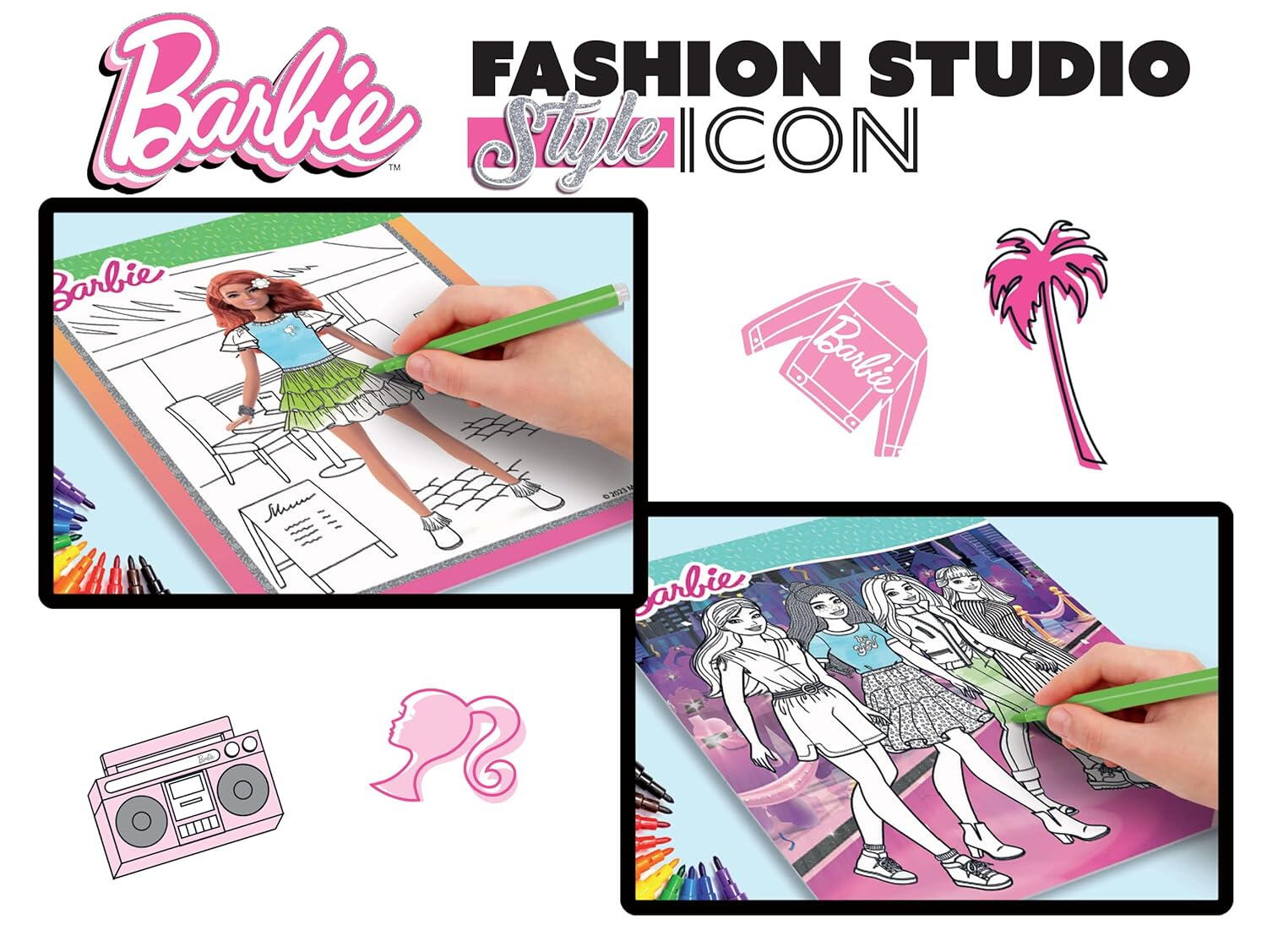 🎨 Transformă-ți imaginația în modă cu Setul de colorat cu activități Barbie - Fashion Icon, creat special pentru fetițele pasionate de design vestimentar și stil!