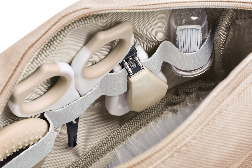 Trusa textila dispune de compartimente elastice si de un buzunar interior mare cu fermoar, astfel incat fiecare accesoriu isi gaseste locul lui, fara sa se piarda prin geanta. Formatul plat si compact permite introducerea usoara in geanta de schimb, rucsac sau bagaj de vacanta. Manerul solid din partea superioara face ca Set de ingrijire Beaba 7 piese Clay sa fie simplu de transportat dintr o camera in alta sau la iesirile de weekend.