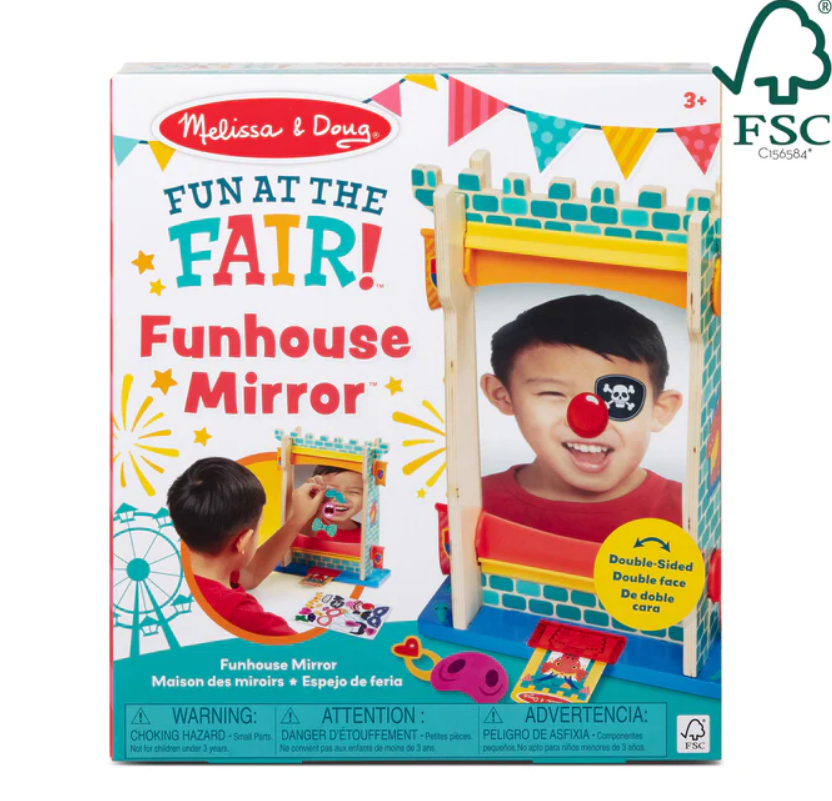 Set de joaca din lemn Oglinda Buclucasa - colectia Distractie la targ este recomandat copiilor de peste 3 ani, fiind un cadou minunat pentru joaca interactiva acasa sau la gradinita.