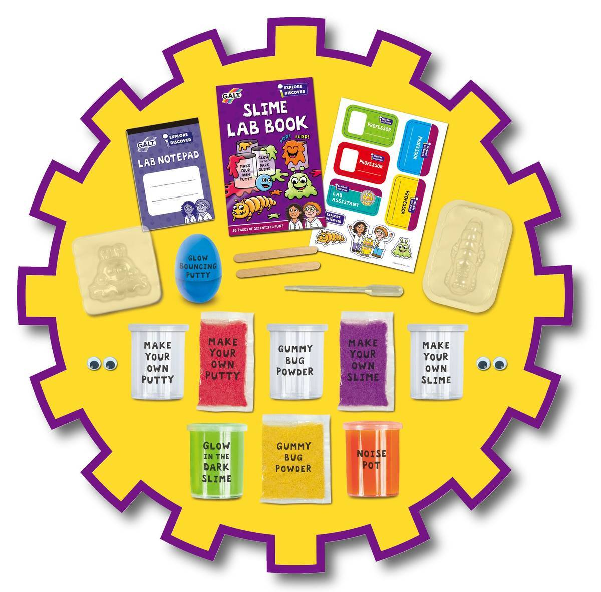 Set experimente - Slime lab este un kit creativ perfect pentru copiii care iubesc stiinta si experimentele amuzante. Micutii pot crea un extraterestru gelatinos care lumineaza in intuneric, o mingiuta sau o insecta lipicioasa, descoperind in acelasi timp proprietatile fascinante ale substantelor gelatinoase.