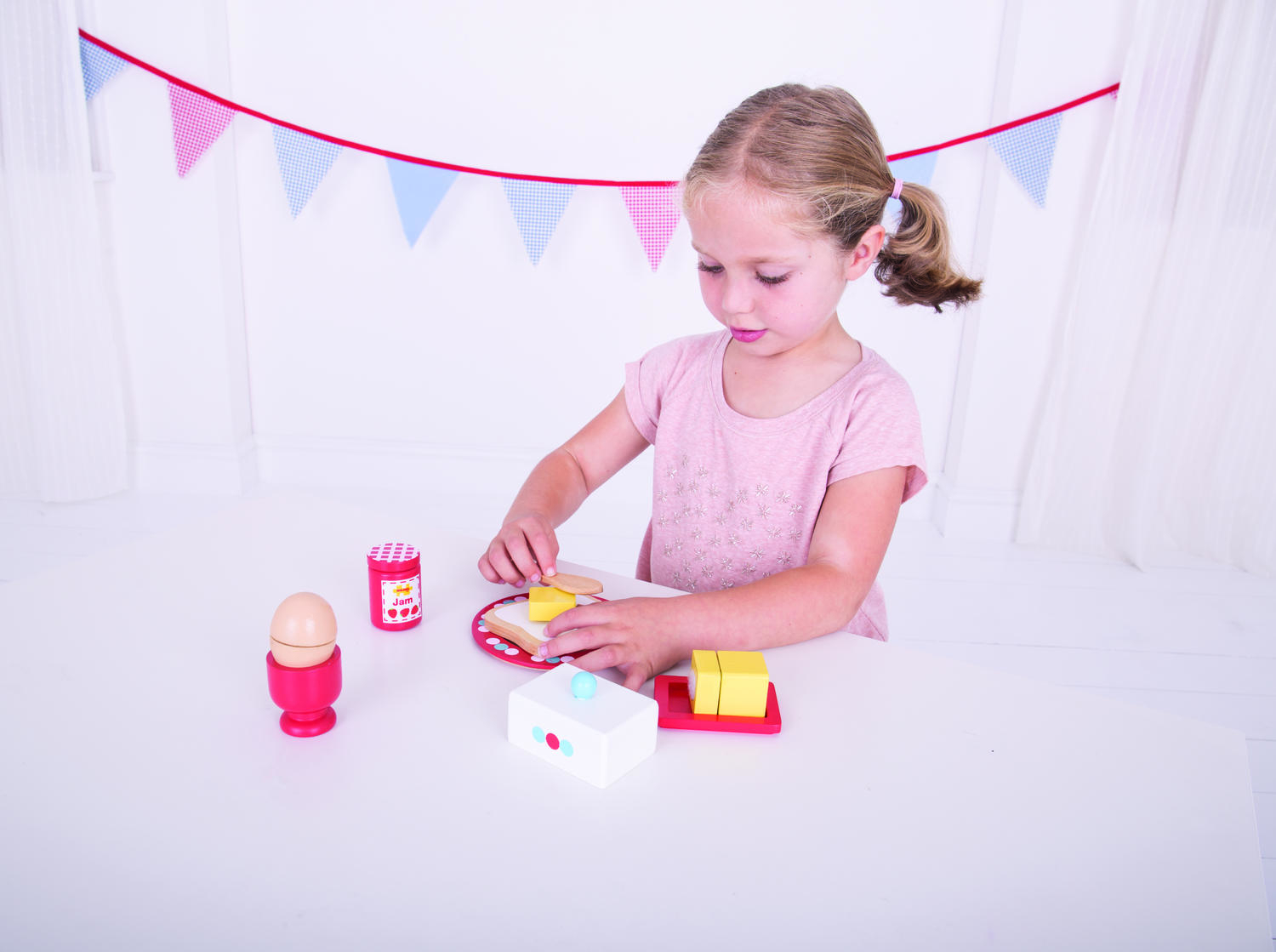 Copiii vor putea sa prepare un mic dejun delicios, cu ajutorul acestui minunat set de joaca din lemn. De acum, micul dejun va fi mult mai amuzant si mai distractiv! Cu siguranta copiii sunt incantati cand pot da o mana de ajutor in prepararea si servirea micului dejun.