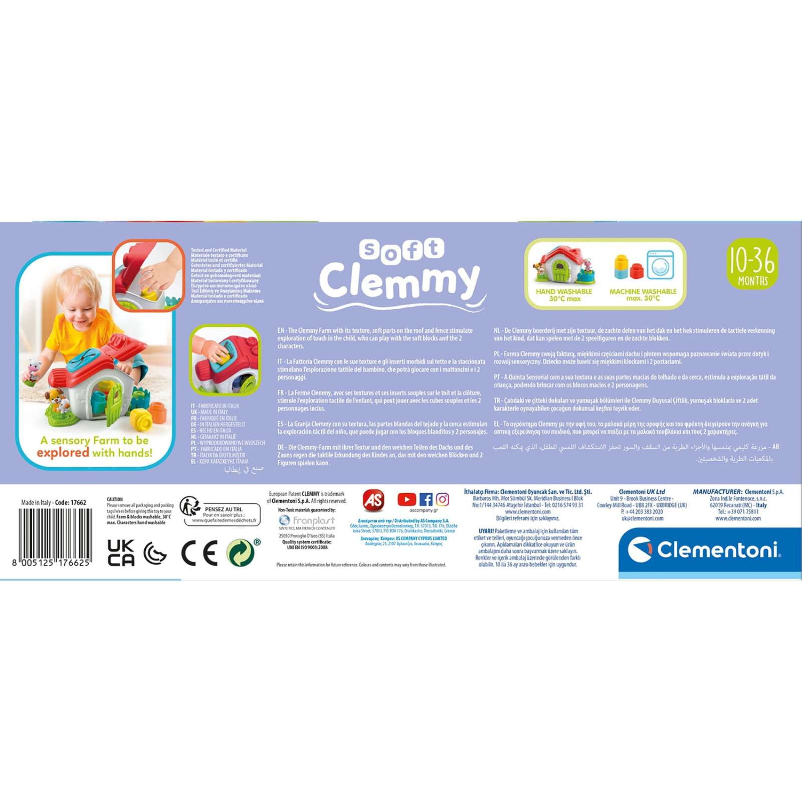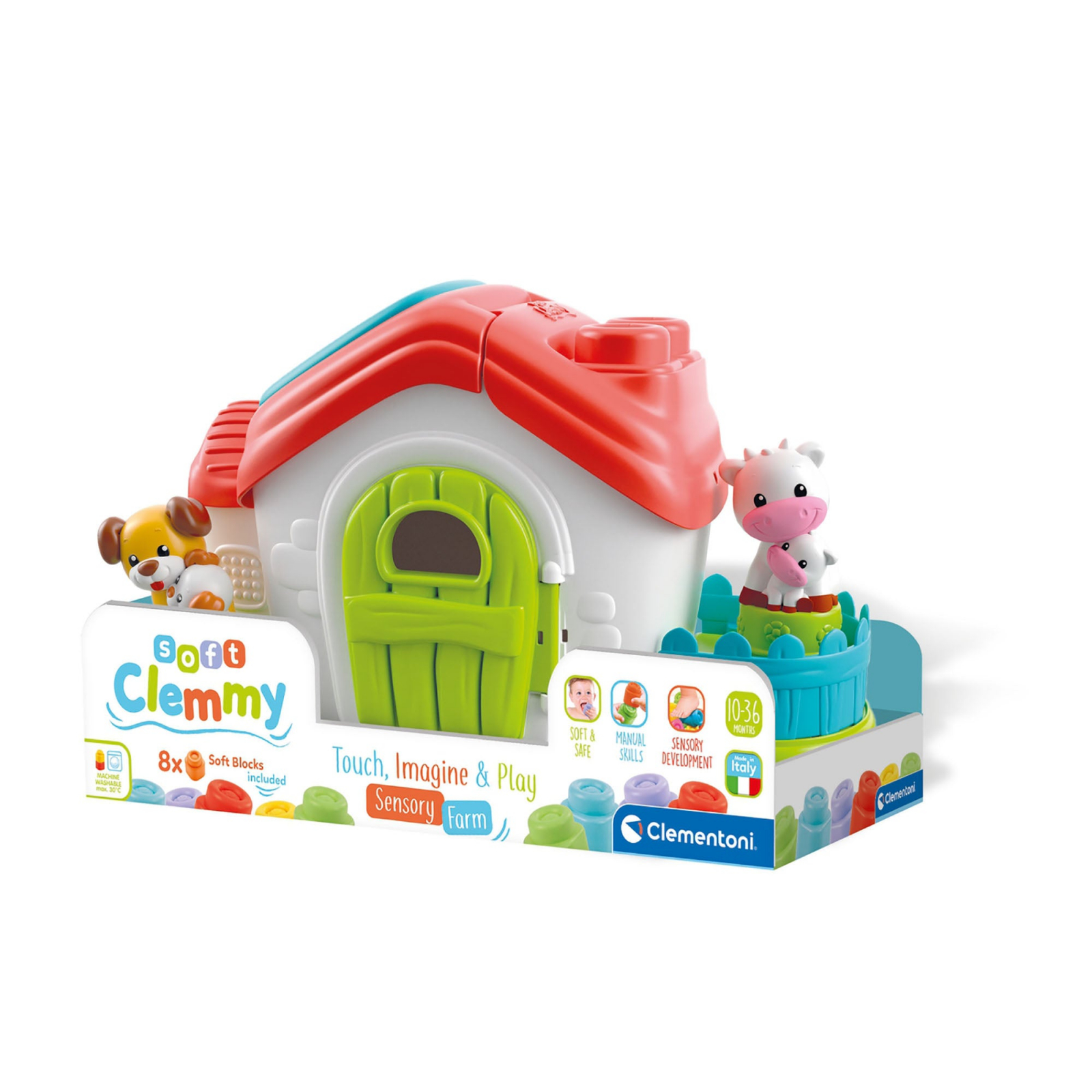 Setul de joaca Soft Clemmy - ferma senzoriala de la Clementoni este plin de texturi cu suprafete iesite in relief, insertii moi - specifice Clemmy, o multime de blocuri si animale prietenoase pe care le gasiti la ferma.