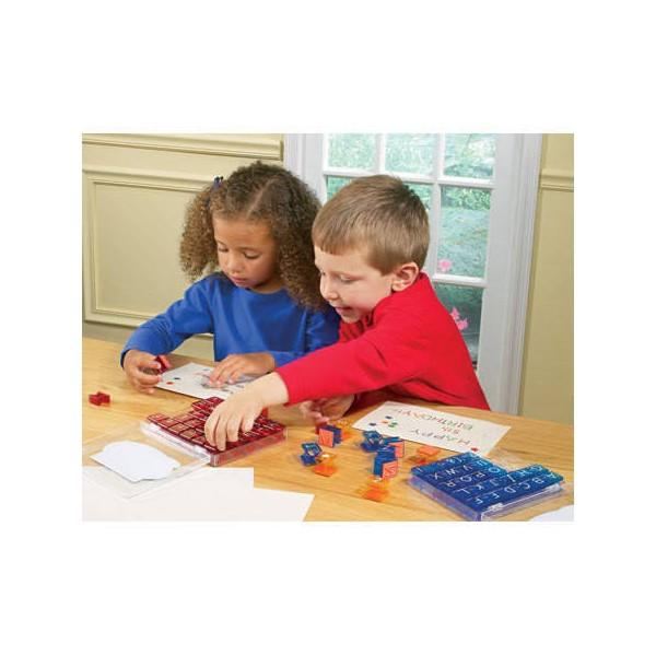Setul " Stampile Alfabet " ii ajuta pe cei mici sa isi dezvolte recunoasterea literelor. Stampilele sunt fabricate din plastic rezistent si cauciuc de calitate, fiind sigure si usor de utilizat. Copiii se pot juca in siguranta, invatand in acelasi timp prin joaca.