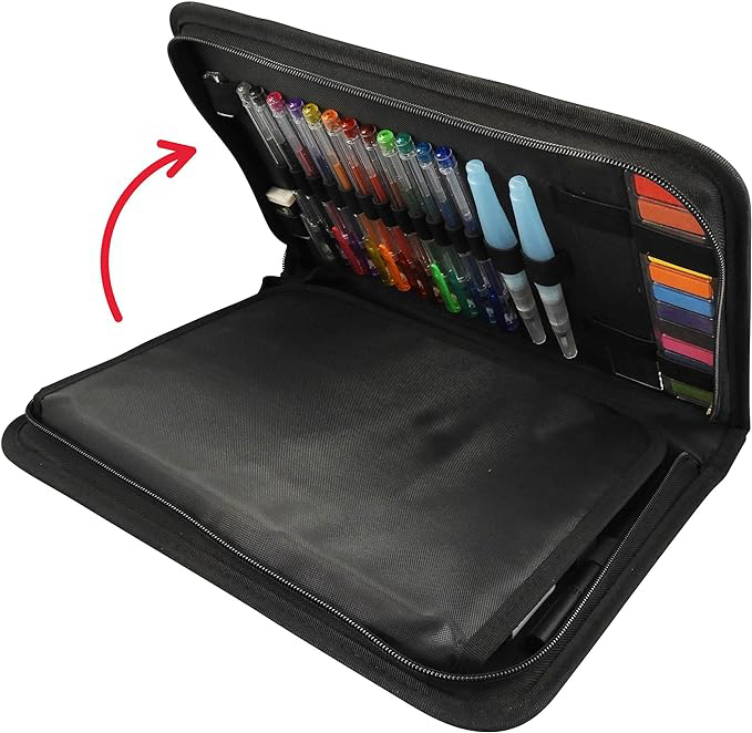 Studio profesional de desen vine cu o husa compacta si eleganta, ideala pentru calatorii, excursii sau pentru scoala. Fiecare accesoriu este organizat eficient pentru a usura accesul si utilizarea.