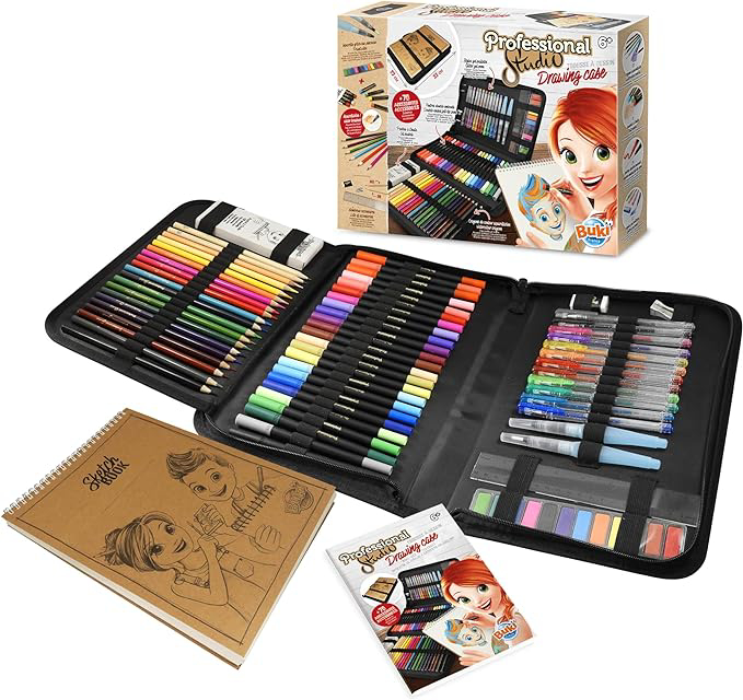Studio profesional de desen este alegerea ideala pentru copiii pasionati de arta si culoare. Cu peste 70 de accesorii incluse, acest set complet le ofera micilor artisti tot ce au nevoie pentru a-si transforma ideile in creatii uimitoare.