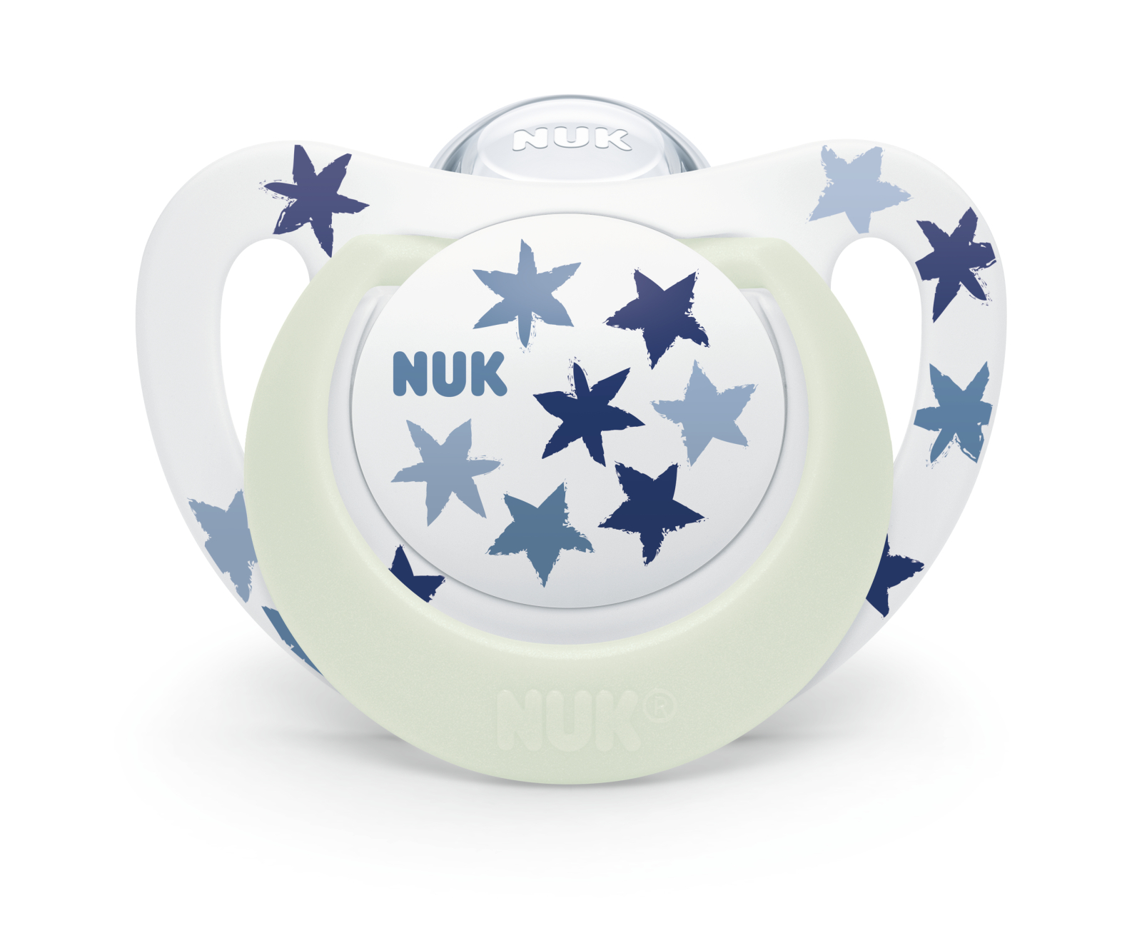 Suzetele Star Day & Night NUK: cu efect de stralucire-in-intuneric ii ajuta pe copii sa gaseasca mai usor drumul catre Taramul Viselor. Materialul special lumineaza in intuneric, astfel incat suzeta poate fi gasita rapid pe parcursul noptii, oferind liniste si confort parintilor si copiilor deopotriva.
