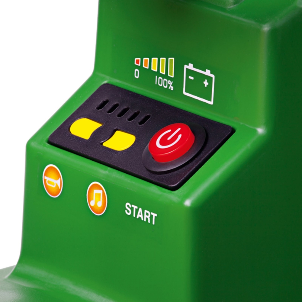 Cand tractorul este pornit, motorul prinde viata, iar copilul tau se va distra ore intregi claxonand sau cantand melodii preinregistrate.