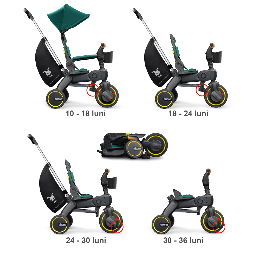 Tricicleta Doona Liki Trike este conceputa sa fie folosita in mai multe moduri, adaptandu-se etapelor de crestere ale copilului. Iata principalele moduri de utilizare: