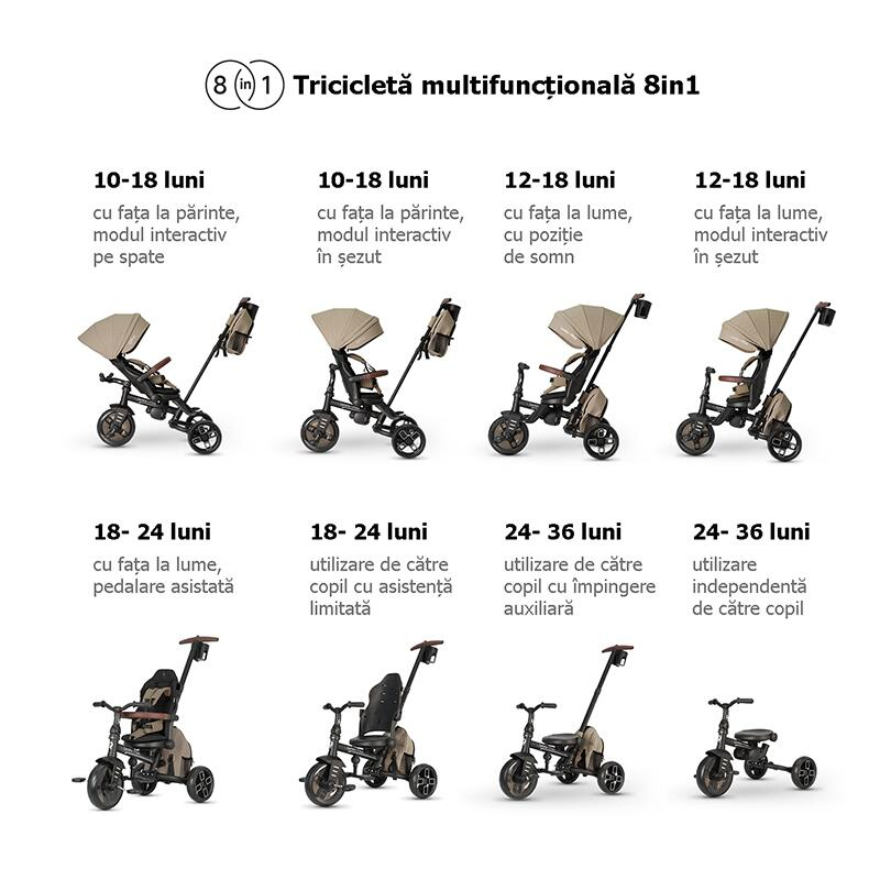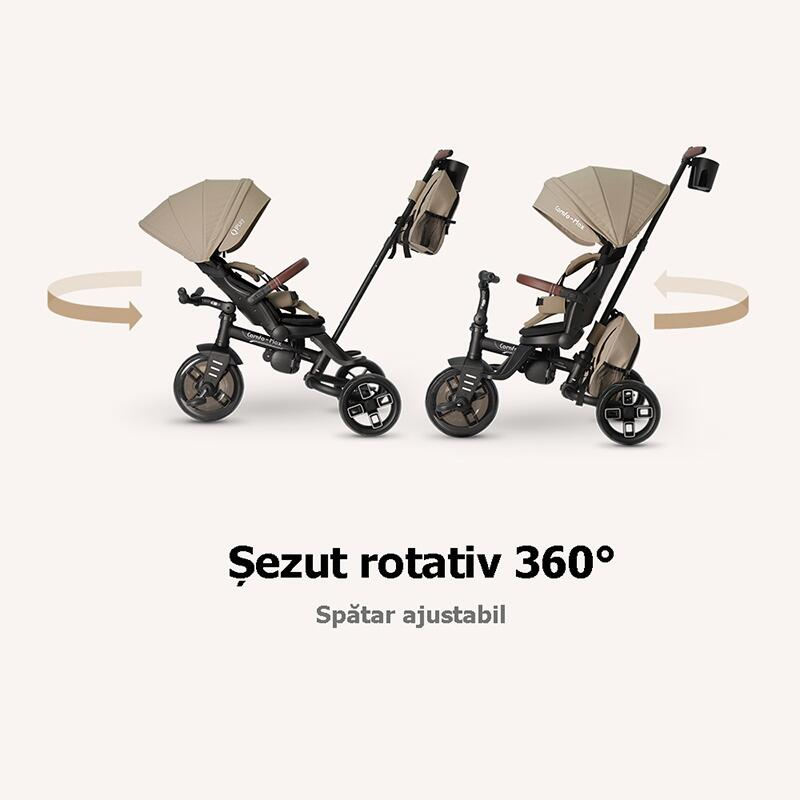 Tricicleta Qplay Comfo Max Bej este echipată cu multiple funcționalități care facilitează utilizarea zilnică: