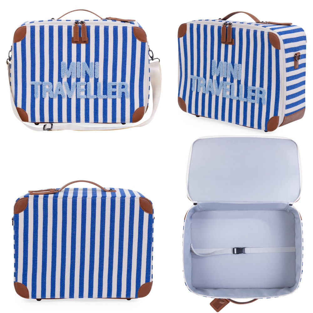 Valiza pentru copii Childhome Mini Traveller Albastru/Alb include un compartiment mare si un elastic ce mentine totul ordonat. Este perfecta pentru una sau mai multe nopti, include o curea de transport, iar eticheta pentru numele copilului aduce un plus de personalitate valizei Childhome Mini Traveller.